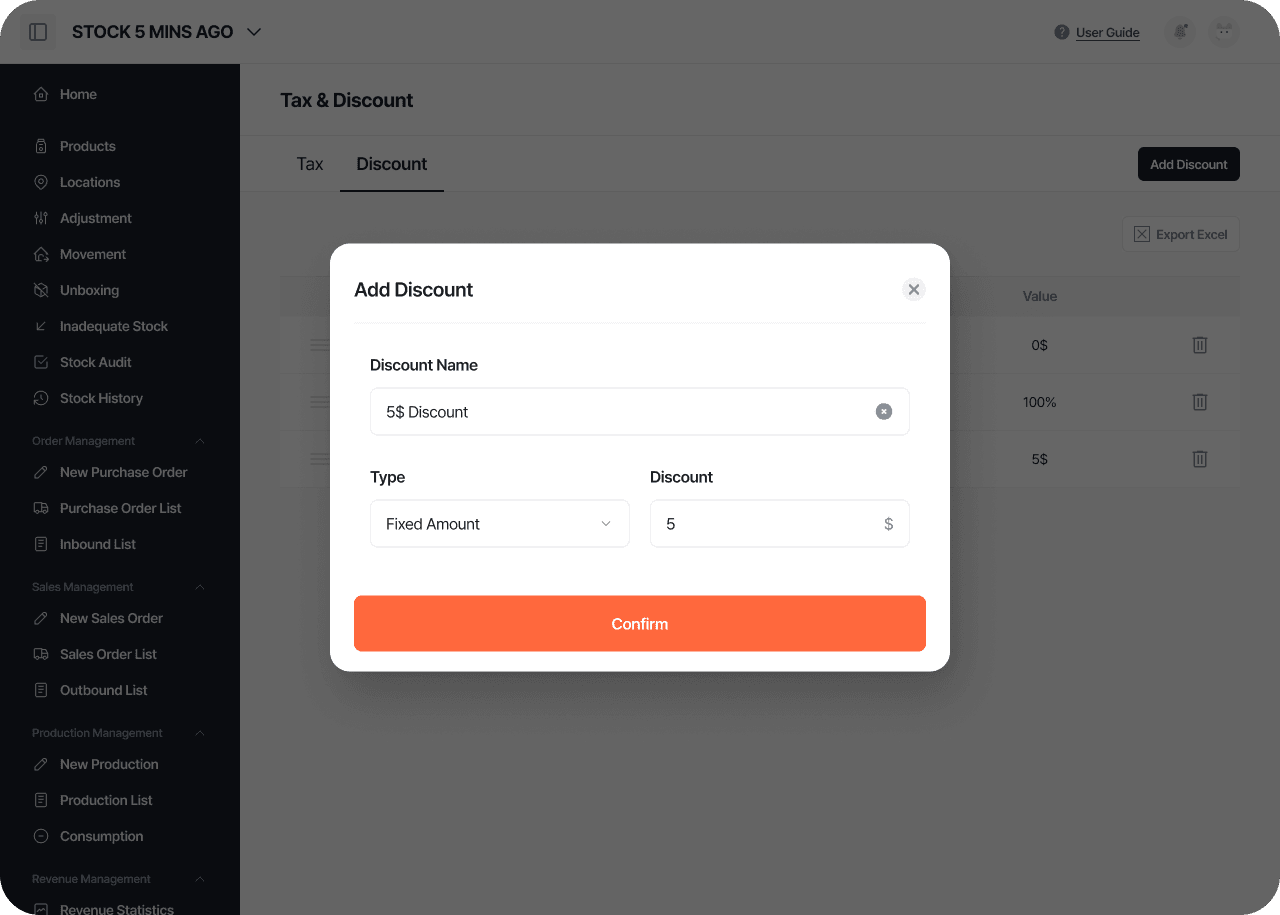Set discount rates flexibly during the inflow and outflow process and see them automatically reflected in transaction documents.